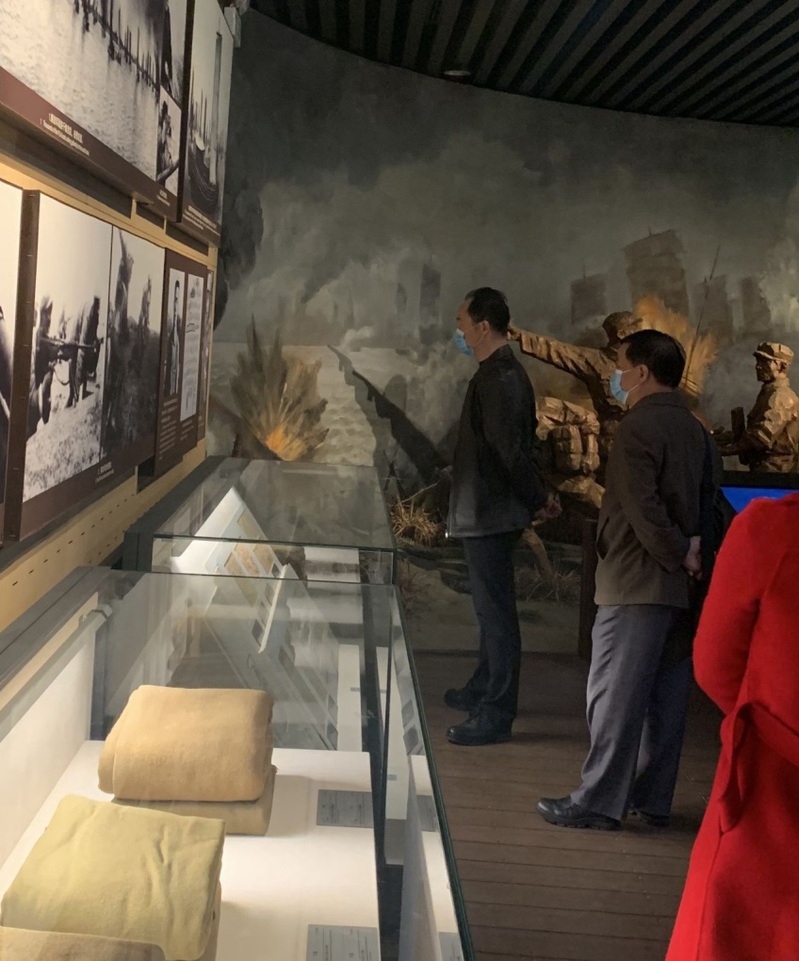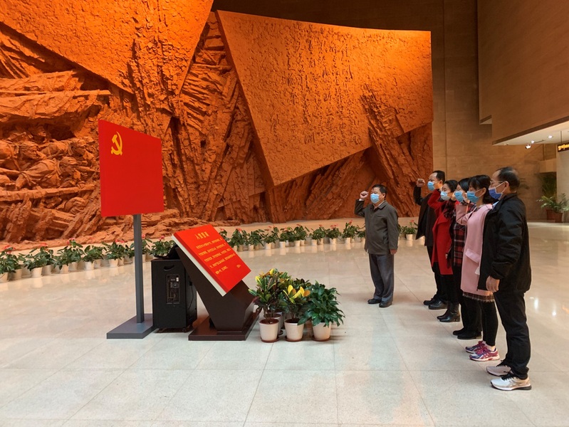 在纪念馆,党支部全体党员面对党旗重温入党誓词,庄严宣誓。纪念馆内大家看的仔细,听得认真,一件件珍贵的革命文物和一段段珍藏的影像资料再现了当年百万军民艰苦奋斗的峥嵘岁月和不怕牺牲的斗争精神。
